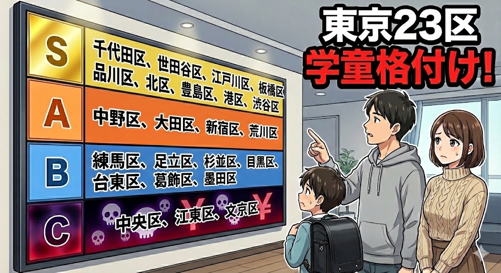 では、具体的に「どの区」が天国(公立コース確定)で、「どの区」が地獄(民間コース前提)なのか?次の記事では、当ラボが全区の要綱を調査して作成した「東京23区・学童格付けマップ」を公開します。あなたの居住区、あるいは引っ越し予定の区がどのランクに位置するのか、以下の記事で確認してみてください。