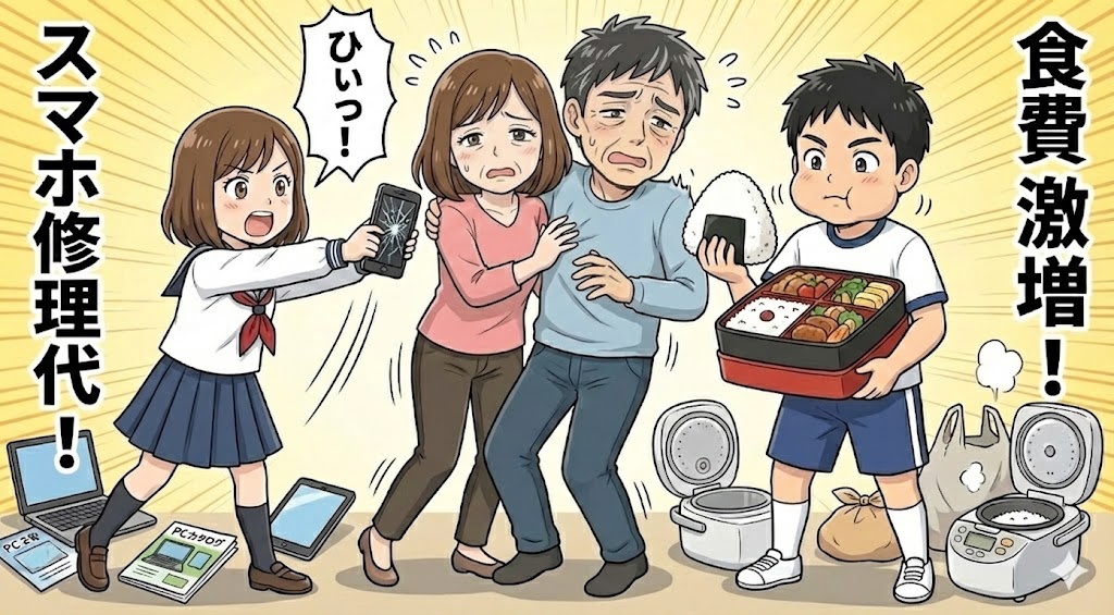 - 中学生: 月20万〜30万円の激増(耐え時)