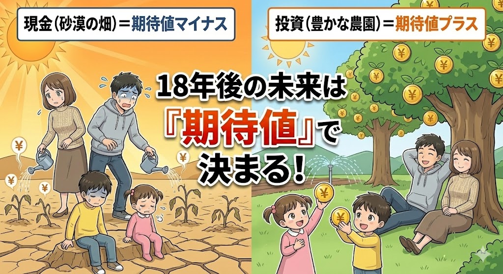 現金で持ち続けるということは、何もしないのではなく、毎年2%ずつ価値が蒸発する資産に全力投資しているのと同じです。インフレとは、あなたの資産に対して国が勝手にかける見えない税金のようなものです。銀行に預けているだけで、毎年2%ずつ価値が税金として引かれていく。そう考えたら、じっとしているのが怖くなりませんか?