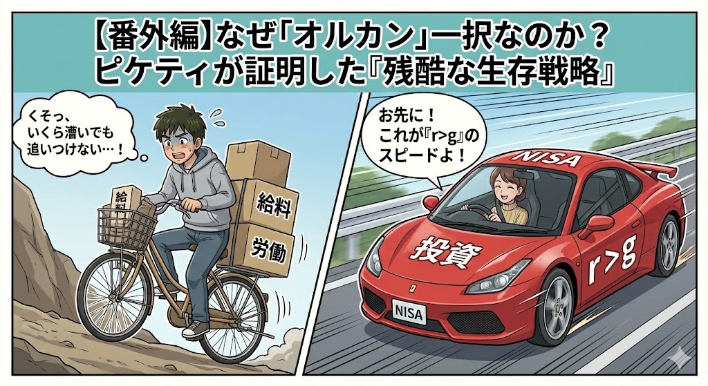 その答えを導き出す鍵は、現代最高の経済学者トマ・ピケティが証明した**「 $r > g$ 」**という数式にあります。