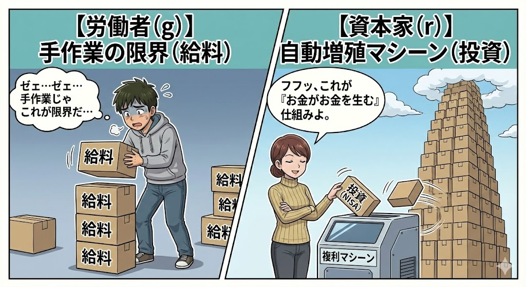 2. r > g の正体:労働者(g)は資本家(r)に絶対に勝てない