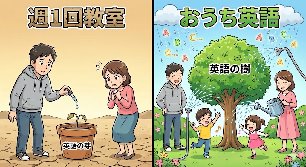 多くの親御さんが、とりあえず「駅前の英会話教室」に通わせますが、はっきり申し上げます。その投資は、ほぼ確実にドブに捨てることになります。