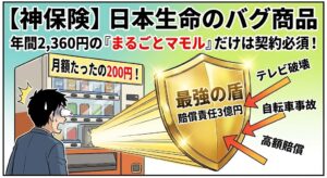 自転車事故や、子供が他人に怪我をさせたり、お店の商品を壊してしまった場合、賠償額は巨額になることもあります。 この破滅的なリスクを、超格安で、しかも別居の両親までカバーできる神のような保険が存在します。これはもし未加入であれば、絶対にオススメです。詳細は以下の記事でご確認ください。
