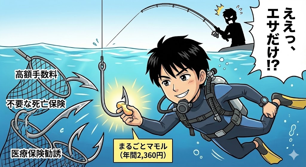 大企業が仕掛けた撒き餌を、魚である私たちが美味しくいただき、針だけを器用に吐き出す。 これこそが、現代の資本主義社会を賢く生き抜くための正しい戦い方です。 保険会社の「安心安全な社会を実現したい」という崇高な理念に感謝しつつ、私たちは月200円で最強の盾だけを手に入れましょう。