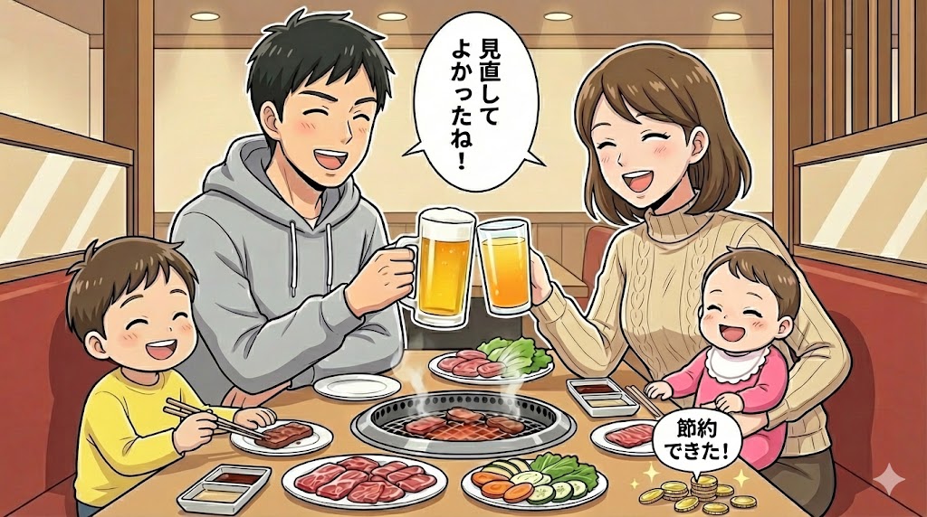 ぜひ、このお金で家族みんなで焼肉に行ったり、週末のお出かけを少し豪華にしたりしてください。 我慢して節約するのではなく、「知恵」を使って無駄を省き、その分を家族の笑顔に使う。これこそが、賢い家計管理の第一歩です。