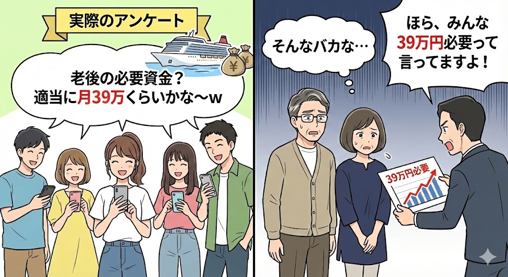 月39万円ないとダメというのは、不安を煽って商品を売りたい側の作戦に他なりません。