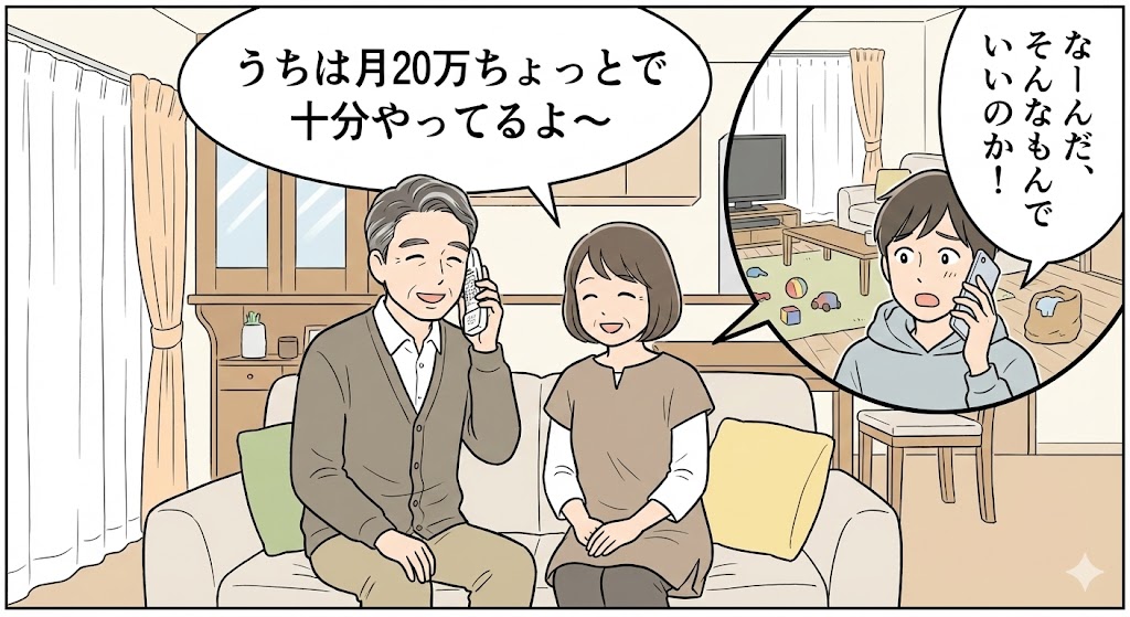 ご両親が今、月いくらで生活しているか、聞いてみたことはありますか? 「お父さん、今の生活費って月いくらくらいかかってる?」 一度そう聞いてみれば、「うちは平均で月20万円ちょっとかな」といった、地に足のついた答えが返ってくるはずです。