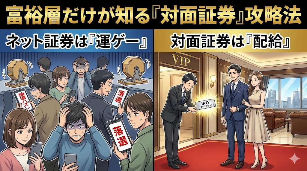 もちろん、世の中には対面証券のIPO(新規公開株)のように、本当に利益が出る特別な提案も存在します。 しかし、そういった果実は、しっかりと取引実績があり、担当者と信頼を築いている本当の上客にしか回りません(詳細は、以下の記事で解説しております)。