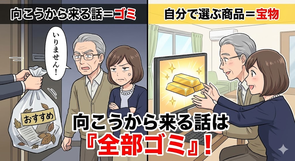「向こうから来る話は全部ゴミ」。 この合言葉さえ忘れなければ、銀行も証券会社も怖くありません。