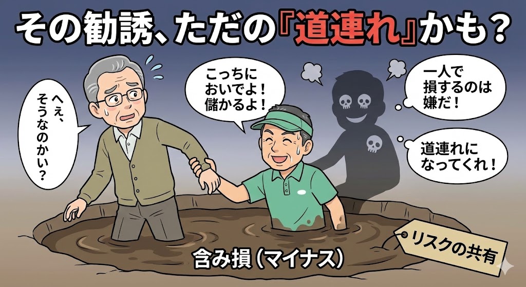友人が悪気なく勧めてくる儲け話の正体は、「私も損をするかもしれないから、あなたも一緒にリスクを背負ってよ」という無意識の叫びかもしれません。 たとえ仲の良い友達でも、お金のことに関しては警戒しすぎるくらいが丁度よいのです。